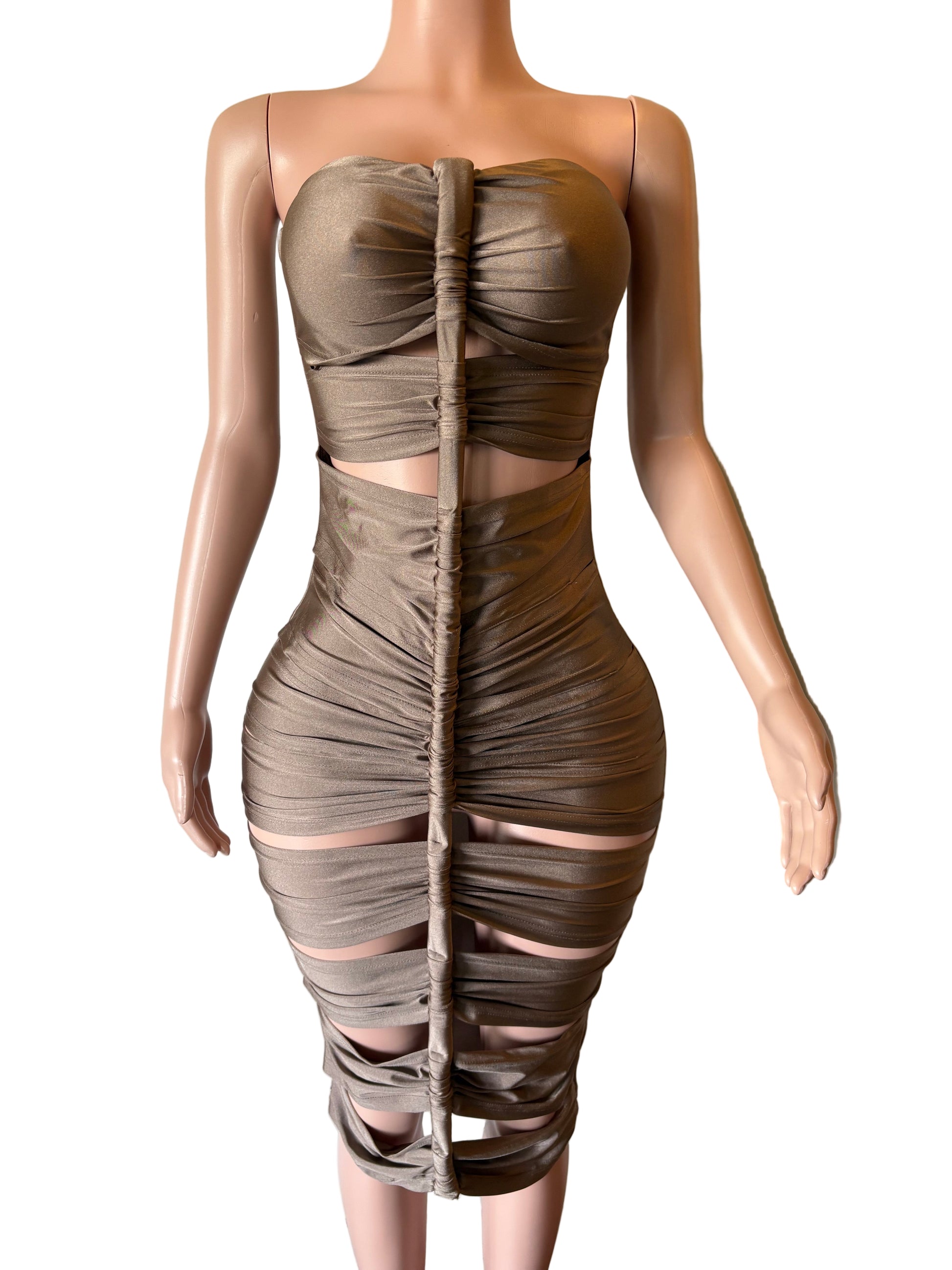 Nude/Taupe midi tube dress with slits in front